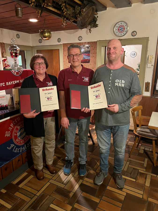 Im Rahmen der Hauptversammlung am 03.01.2025 wurden die Jubilare für die 25-jährige Mitgliedschaft bei den Bayern Bazis Flachslanden geehrt.